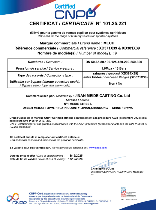 Meide Group butterfly valves have obtained CNPP certification