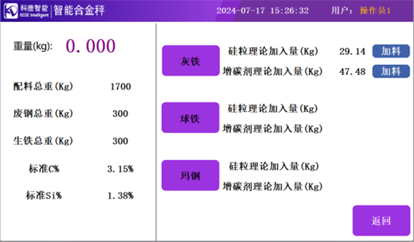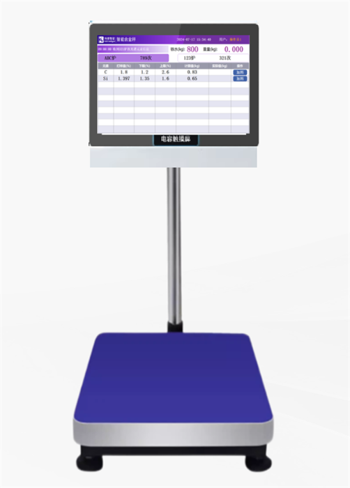 FSY-XX-TC型智能合金秤針對(duì)鑄造行業(yè)電爐熔煉輔料加入場(chǎng)景打造的一款工業(yè)級(jí)計(jì)量產(chǎn)品,集成CPU和HMI系統(tǒng)于一體,通過(guò)光譜檢測(cè)數(shù)據(jù)和材質(zhì)標(biāo)準(zhǔn)并與智鑄云平臺(tái)、智鑄云易享版APP、熔煉云小程序等集成,精確計(jì)算合金輔料補(bǔ)加量,實(shí)現(xiàn)合金加入量數(shù)據(jù)統(tǒng)計(jì)、分析與查詢。