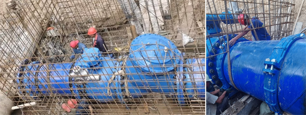 在施工過程中,玫德的工程師團(tuán)隊(duì)深入施工現(xiàn)場,與施工單位緊密合作,嚴(yán)格把關(guān)安裝規(guī)范,確保每一個接口的關(guān)鍵參數(shù)符合規(guī)范。最終項(xiàng)目順利通水,這標(biāo)志著大口徑鋼管溝槽連接方案在閥門井場景中成功應(yīng)用!
