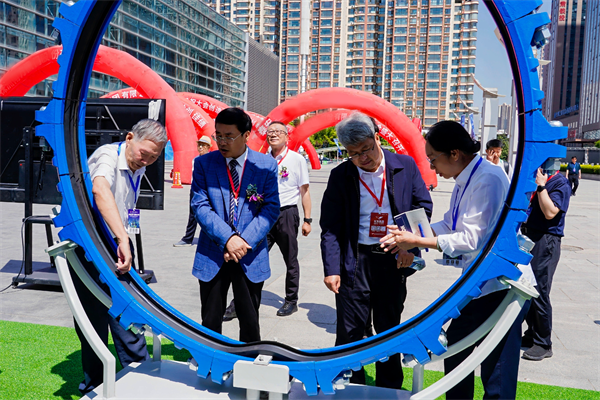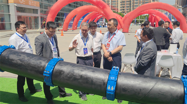 原甘肅省水利廳一級(jí)巡視員、甘肅省水利學(xué)會(huì)理事長(zhǎng)吳天臨參觀玫德集團(tuán)自主研發(fā)的大口徑鋼管柔性連接技術(shù)