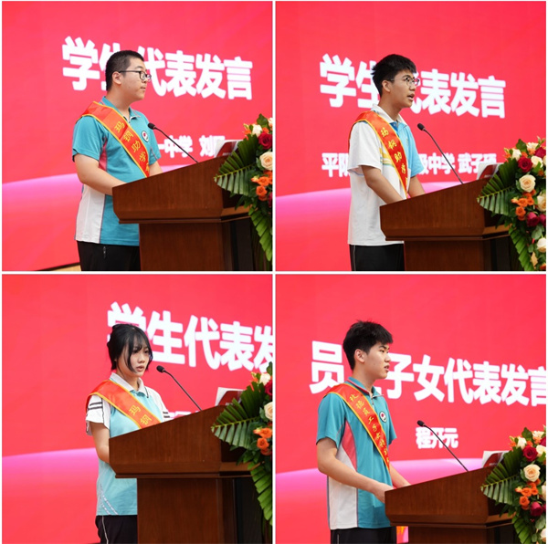 平陰一中劉旸、平陰實(shí)驗(yàn)高中武子碩、平陰工業(yè)學(xué)校王國(guó)慶和玫德集團(tuán)員工子女程開元作為學(xué)生代表分別發(fā)言,誠(chéng)摯感謝玫德集團(tuán)的鼎力支持,感恩瑪鋼助學(xué)基金二十年如一日的守護(hù)。他們表示,無論身在何方,都會(huì)做家鄉(xiāng)的宣傳者,做玫德精神的傳承者!